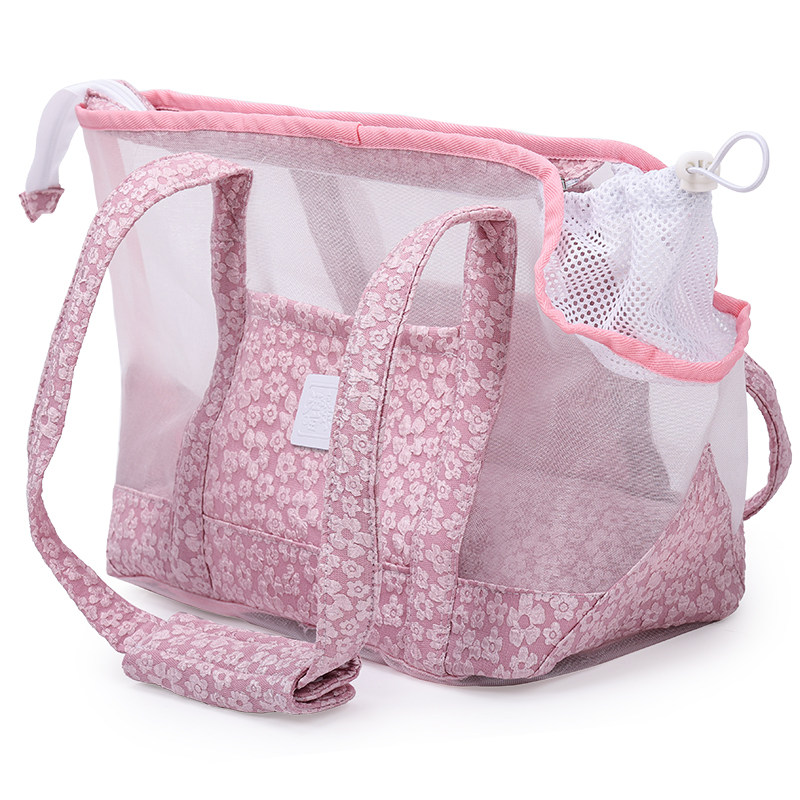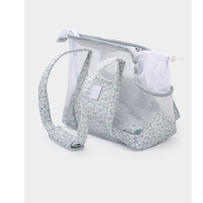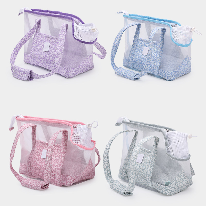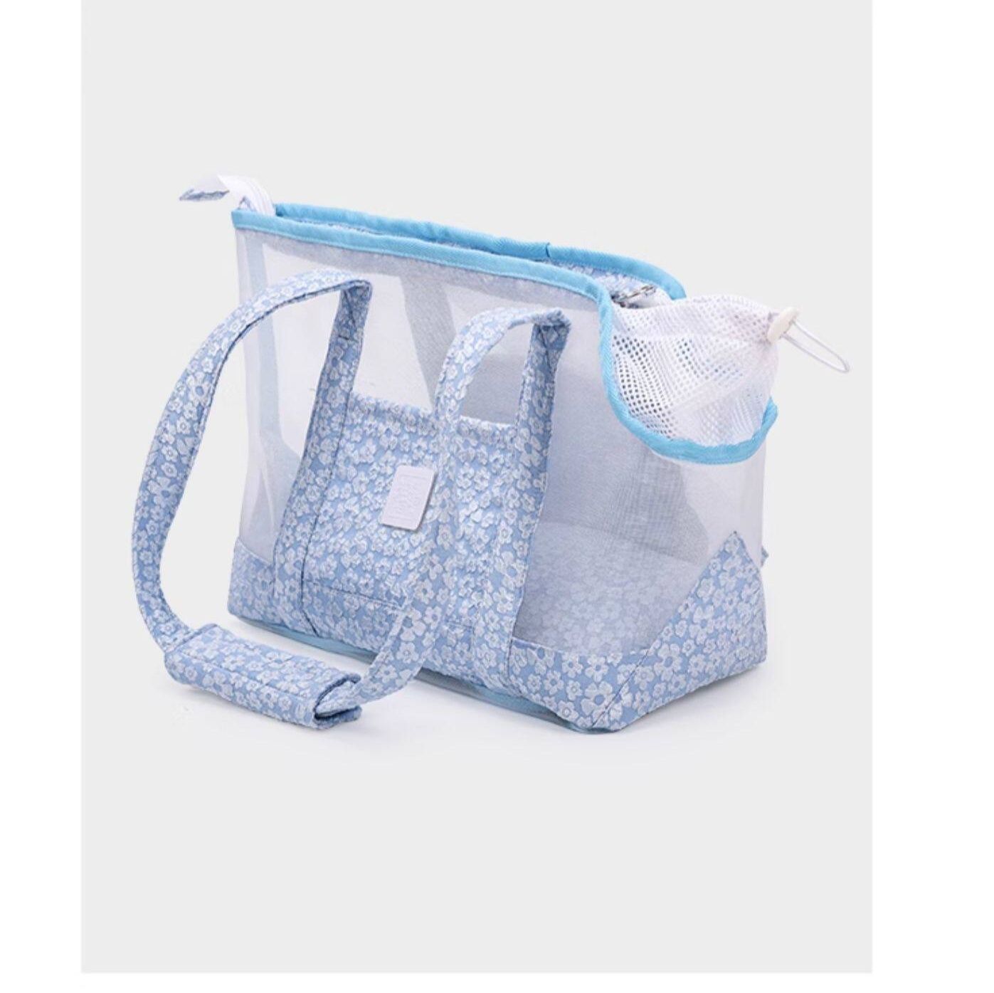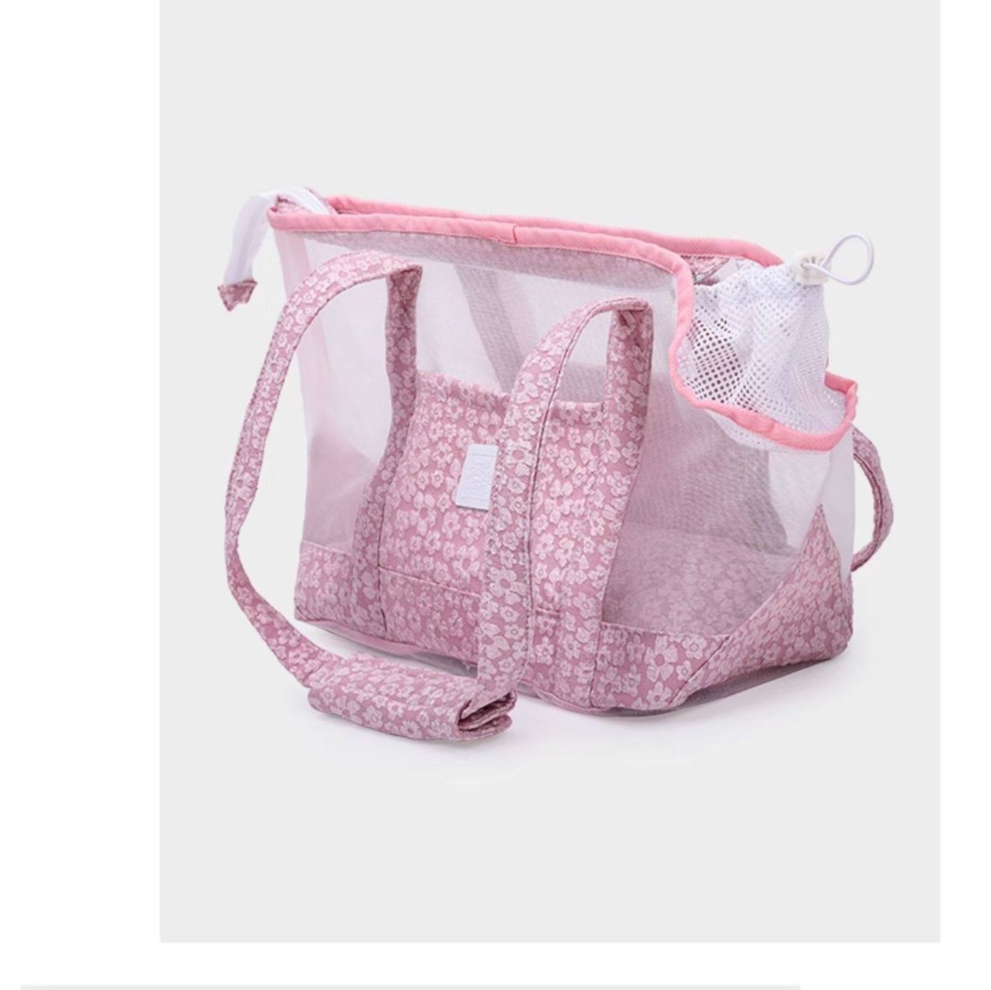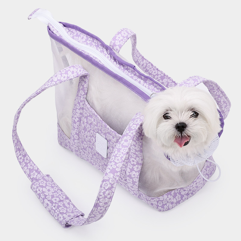 可愛らしい花柄デザインが施された布地と透明部分の組み合わせがおしゃれで、小型犬のお散歩やお出かけに最適です。