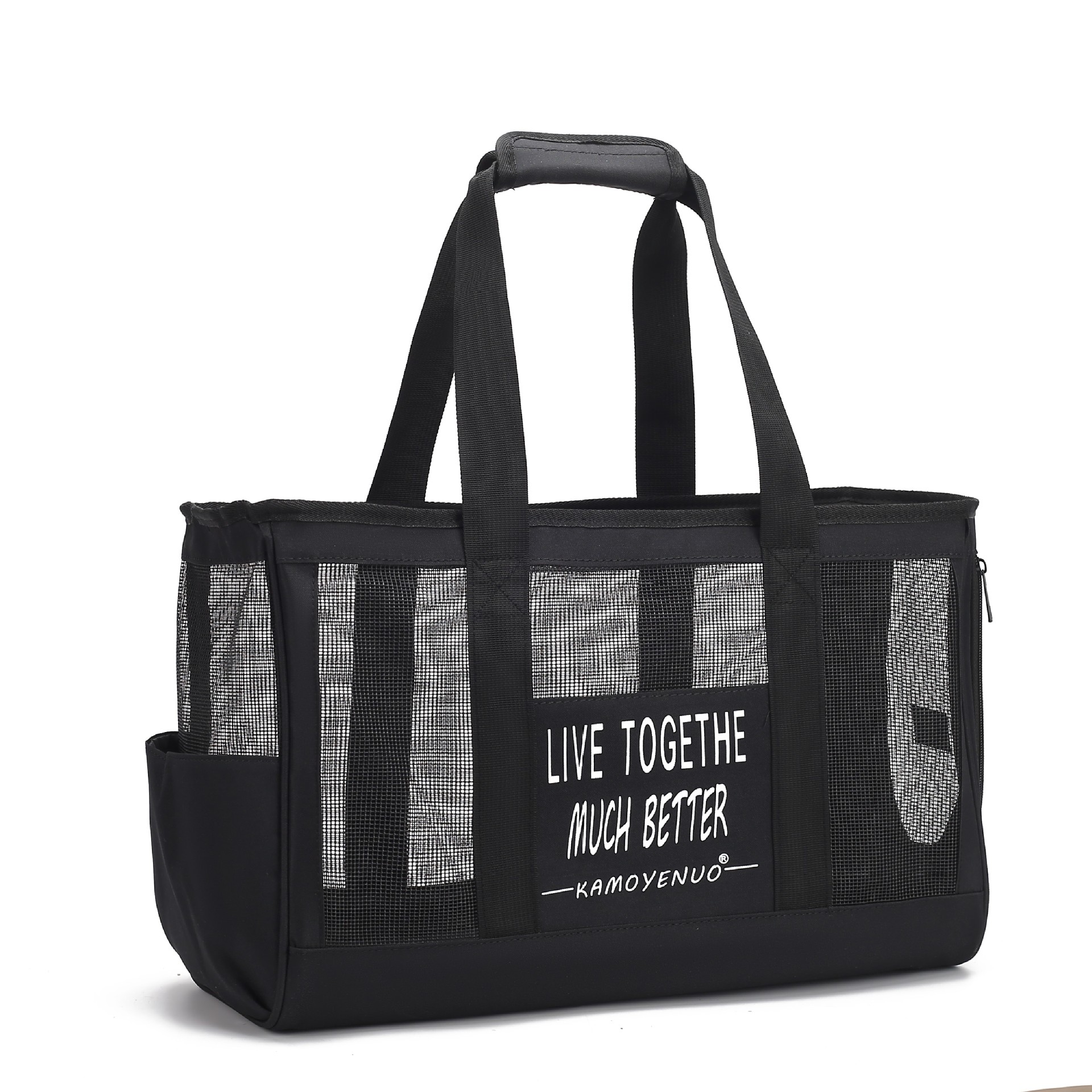 通気性に優れたメッシュ窓を両サイドに配置し、ペットの様子を確認しながら安心して移動できます。