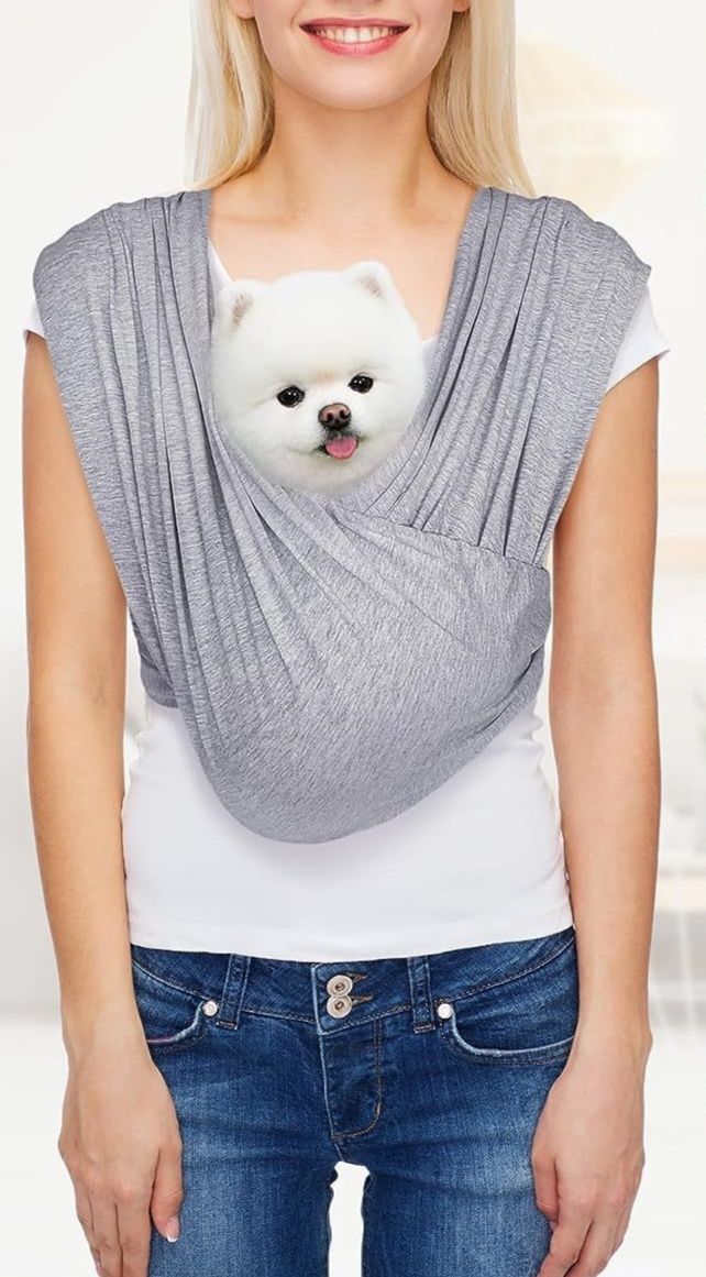 柔らかな布地で肩への負担を軽減し、小型犬を胸元でしっかり抱えられるショルダー仕様になっています。