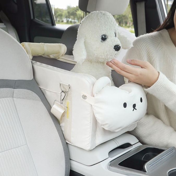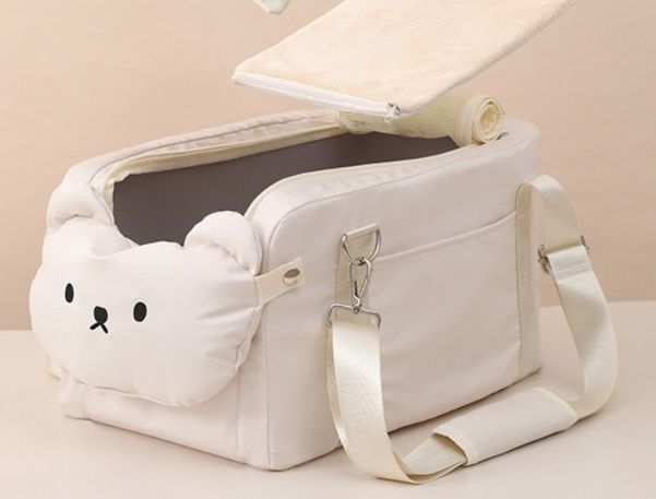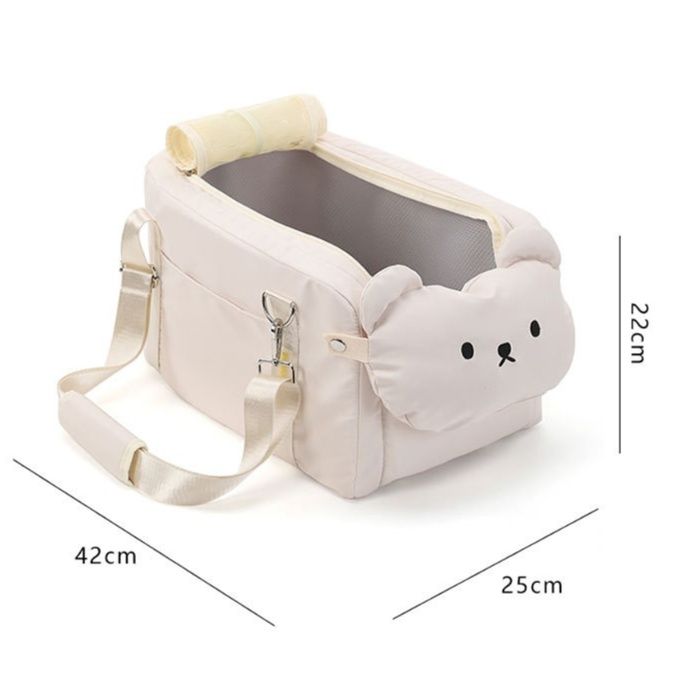可愛いうさぎの顔と耳がデザインされた小型犬専用の犬バッグです。
