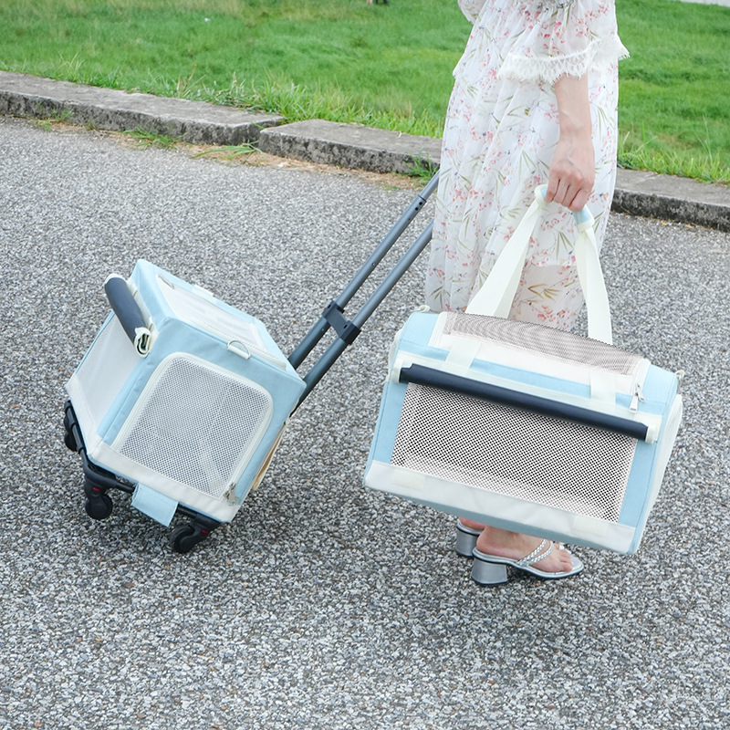 長時間の移動でも飼い主様の負担を軽減する機能的なペット用キャリーです。