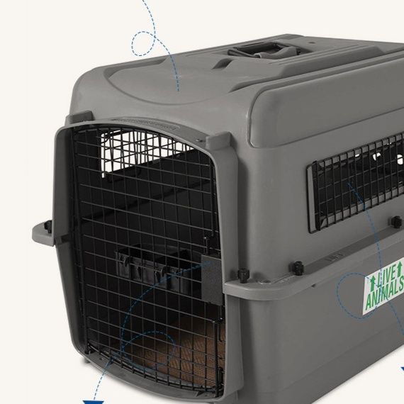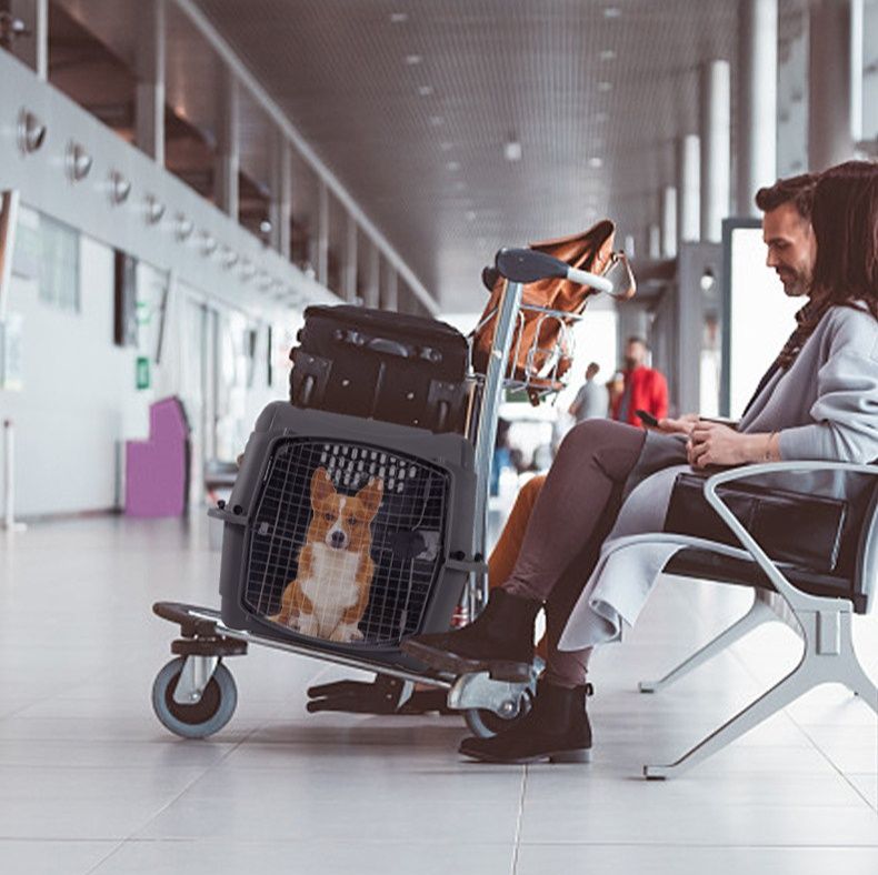 航空機への搭乗基準をクリアした頑丈な犬バッグのキャリーです。 丈夫なプラスチック素材と金属製の扉で大切な愛犬を安全に守ります。 通気性に優れた設計で長時間の移動でも快適に過ごせます。 上部と側面に持ち手が付いており持ち運びも便利です。 中型犬から大型犬まで対応可能な広々とした空間設計で動物病院への通院や旅行時の移動に最適なキャリーです。