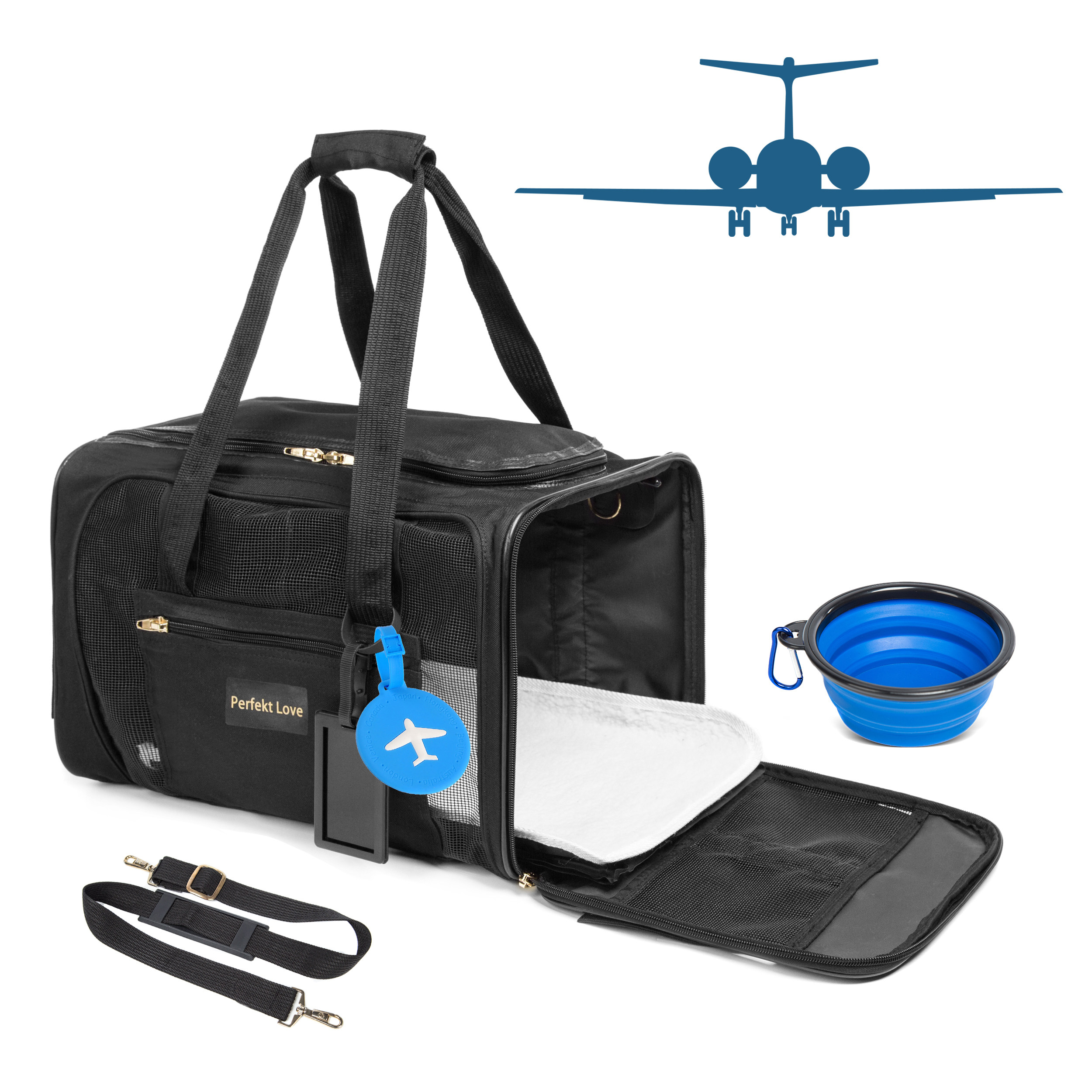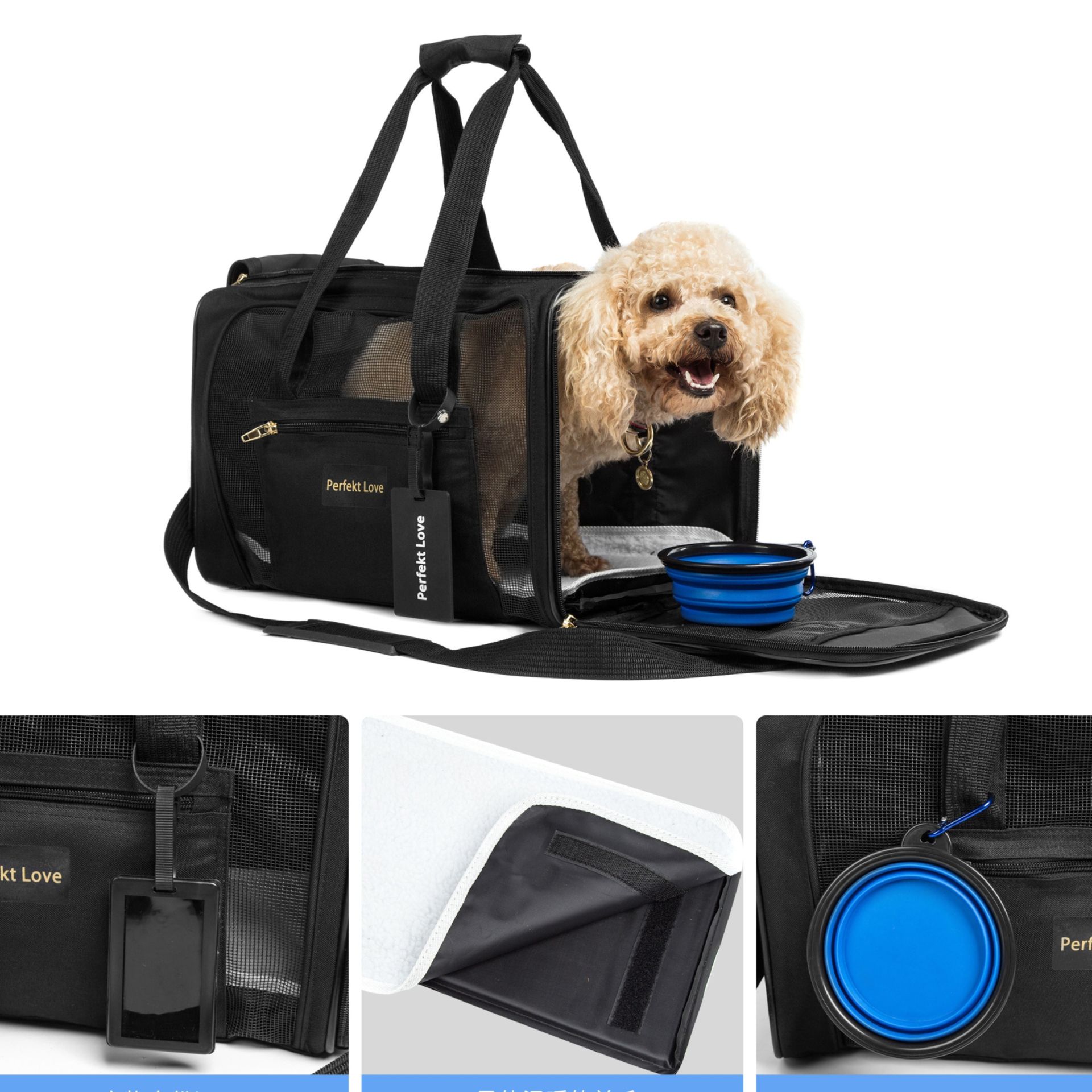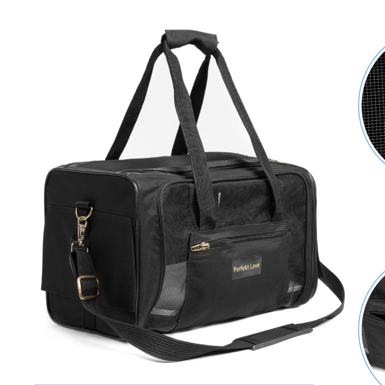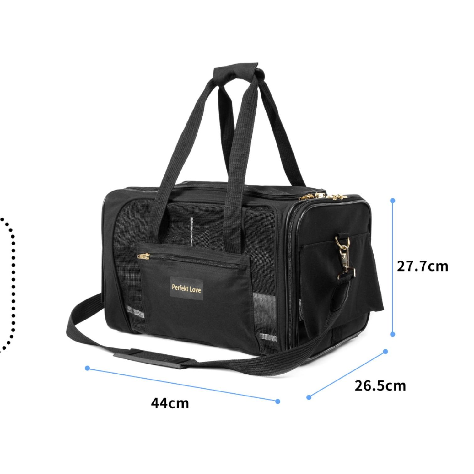 小型犬や猫などのペットに適したサイズで、電車や公共交通機関でのお出かけに便利なキャリーバッグです。