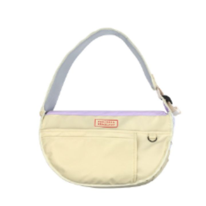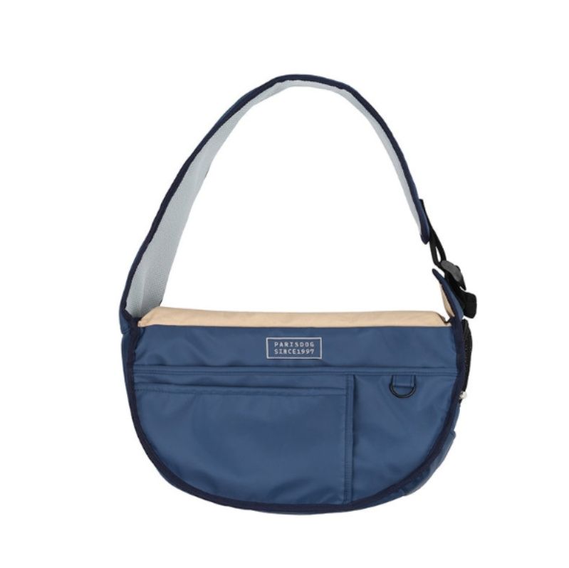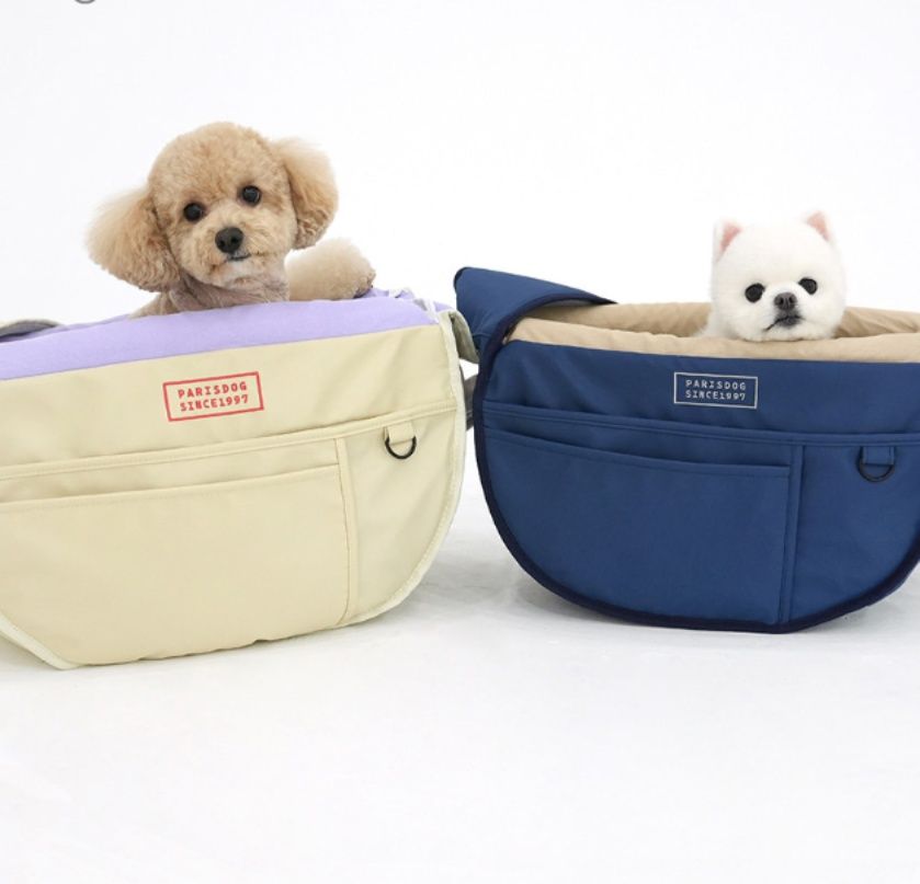 愛犬とのお出かけを快適にする半月型の犬バッグです。