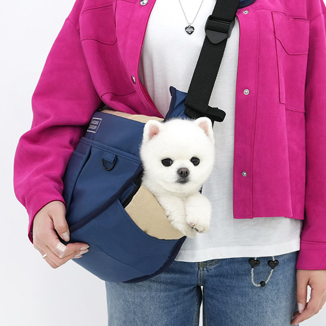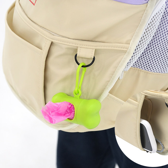 斜めがけスタイルで両手が自由に使え、飼い主の負担を軽減します。