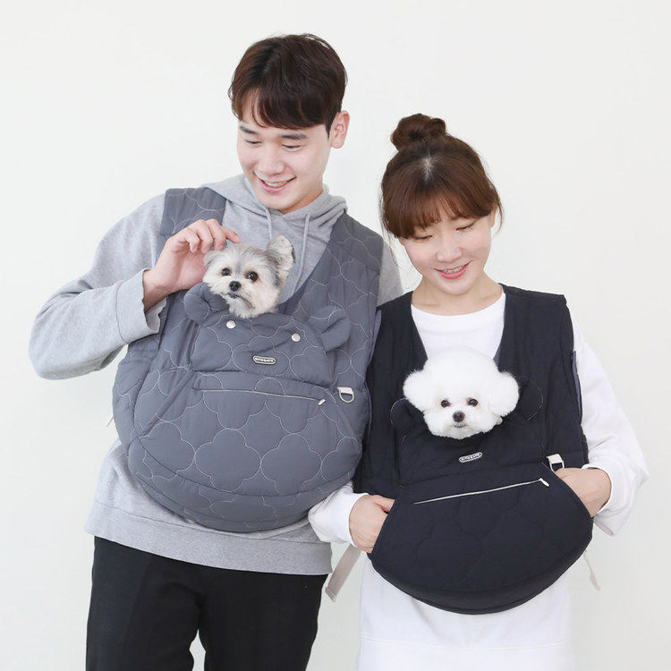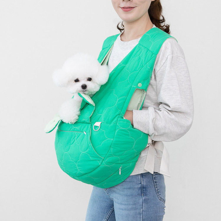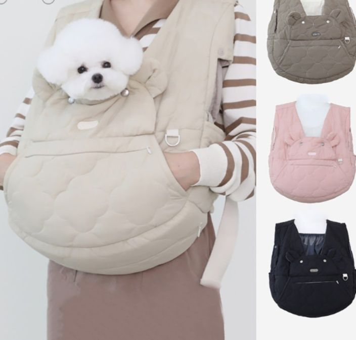 愛犬との快適なお散歩を実現する、キルティング素材の抱っこ型犬バッグです。