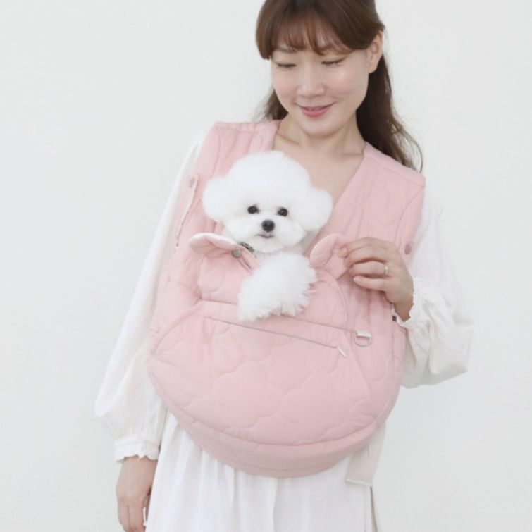 愛犬との快適なお散歩を実現する、キルティング素材の抱っこ型犬バッグです。 ふっくらとした丸みのあるデザインで、小型犬を優しく包み込みます。 前面のポケットや調節可能なストラップなど機能性も充実しており、長時間のお散歩でも飼い主様の負担を軽減します。 頭部分から顔を出せる仕様で、愛犬も景色を楽しめる設計になっています。 普段使いから通院まで幅広く活躍する、実用的で可愛らしい犬バッグです。