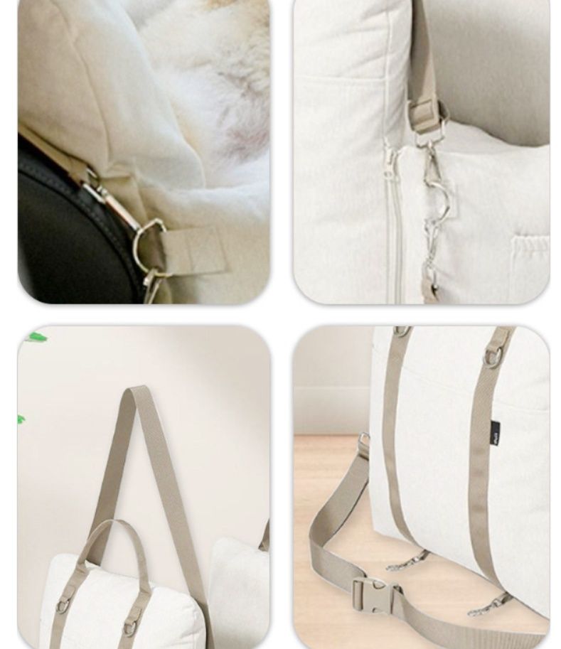 座席に固定できる安全設計で、小型犬や猫に最適なトートタイプのキャリーバッグとなっています。