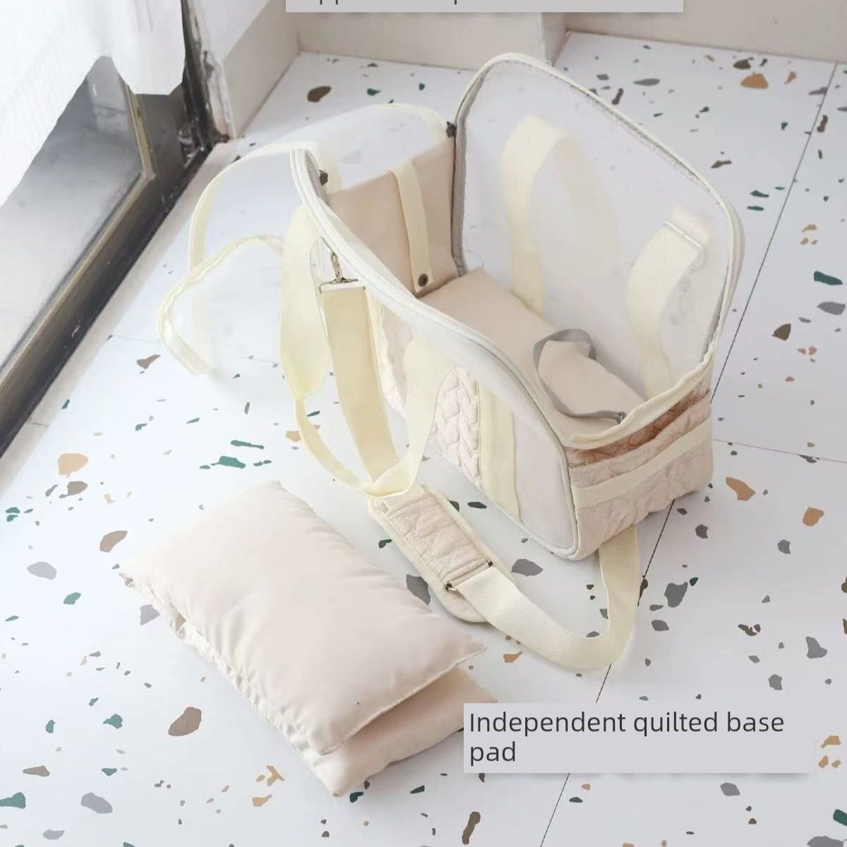 上品なキルティング加工が施された本体に、通気性に優れたメッシュ窓を装備し、愛犬の様子をいつでも確認できます。