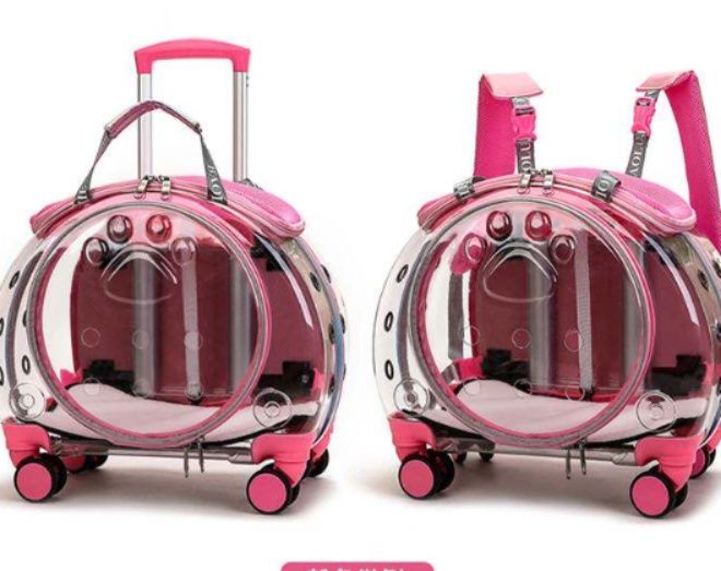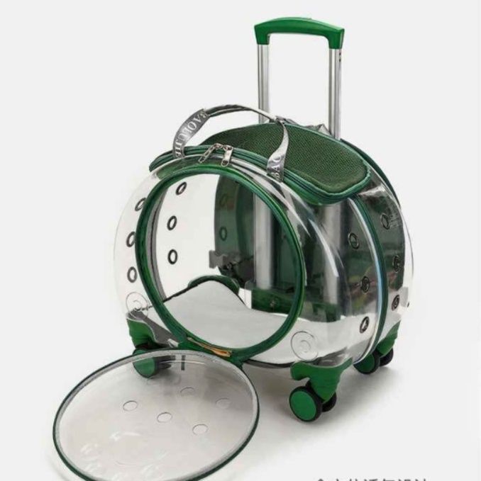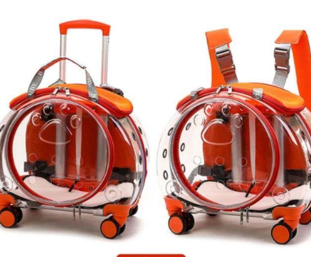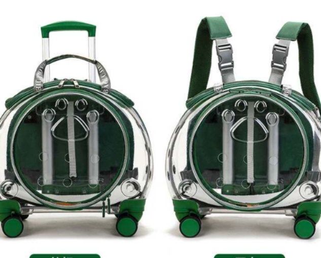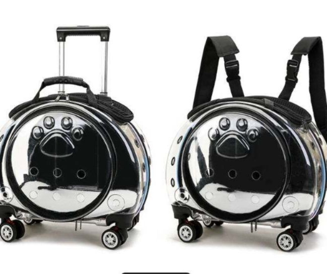 愛犬との移動を快適にする透明カプセル型の犬バッグです。 四輪キャスター付きで転がして運べるキャリーなので、長距離の移動も飼い主様の負担を軽減します。 透明な窓から愛犬の様子を確認でき、ペットも外の景色を楽しめる設計です。 伸縮式のハンドル付きで持ち運びも楽々、背負うこともできる多機能タイプです。 通気孔も十分に確保され、愛犬が快適に過ごせる空間を提供します。 旅行やお出かけに最適な犬用キャリーです。