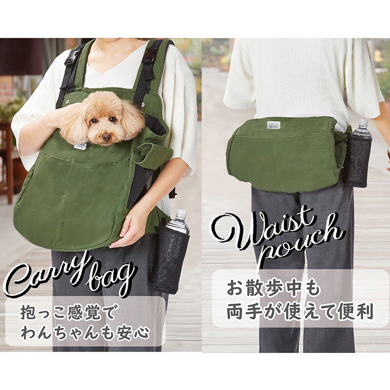 前面抱っこスタイルと腰巻きウエストポーチの2通りの使い方ができ、お散歩時の利便性を高めます。