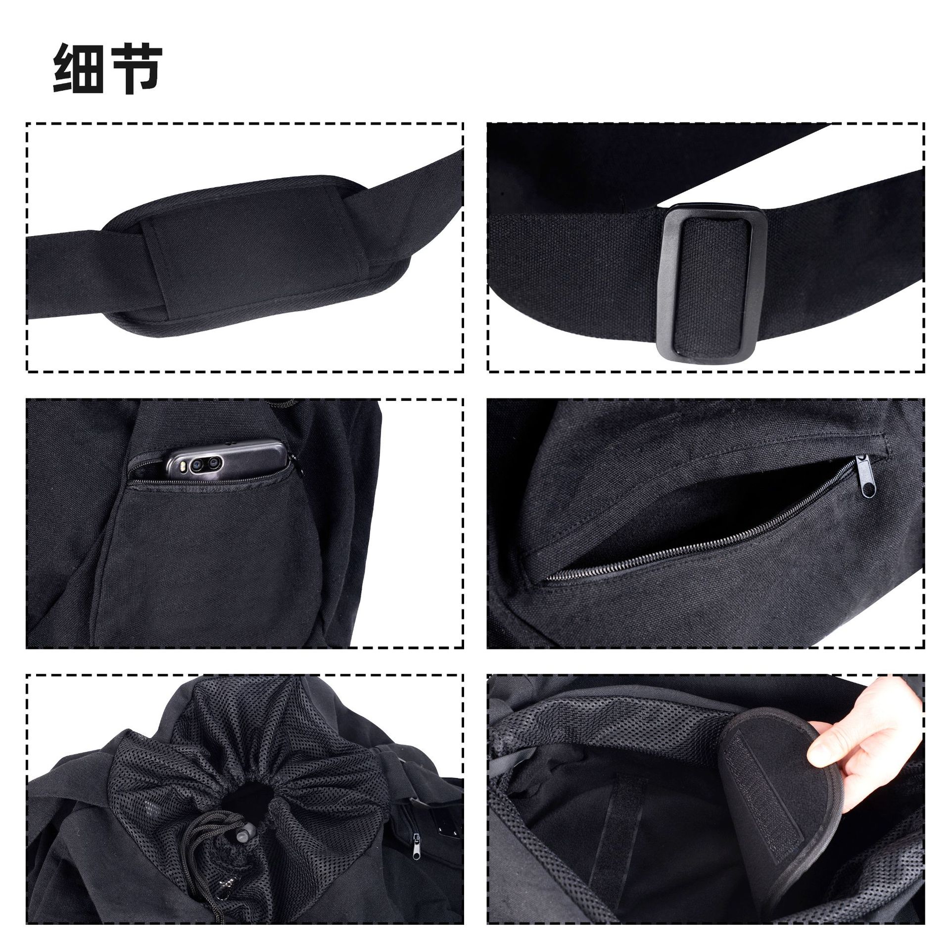 肩掛け式で両手が自由に使え、調節可能なベルトで体にしっかりフィット。